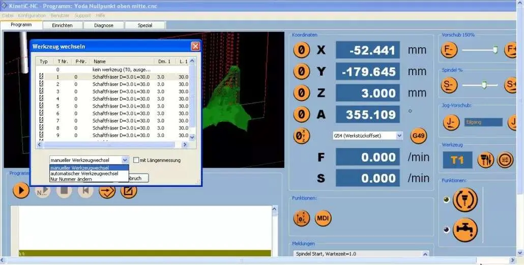 - È dotato di un viewport grafico 3D che mostra l'anteprima del percorso utensile caricato e mentre viene eseguita la lavorazione mostra la posizione dell'utensile in tempo reale